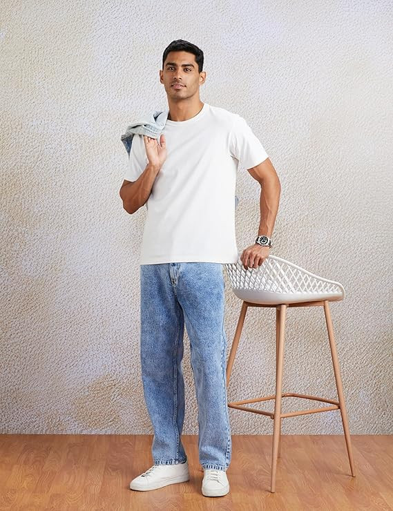 Amazon Brand - Symbol Men's Baggy Fit Cotton Jeans | Mid Rise | Loose & Relaxed | Oversized Jeans Pant
