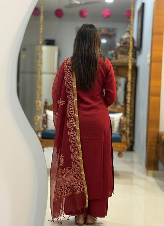 • ? Complete Kurta Set: Includes a straight printed kurta, comfortable matching pant, and coordinated dupatta for a complete ethnic outfit