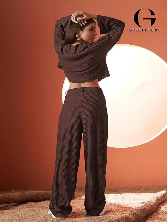 Co-Ord Set for Women stylish | Textured Lycra Blend Casual Western Set | Dress For Woman | Trendy Two Piece Outfit for Casual, Party & Travel Outfits | Summer Co-Ord Set