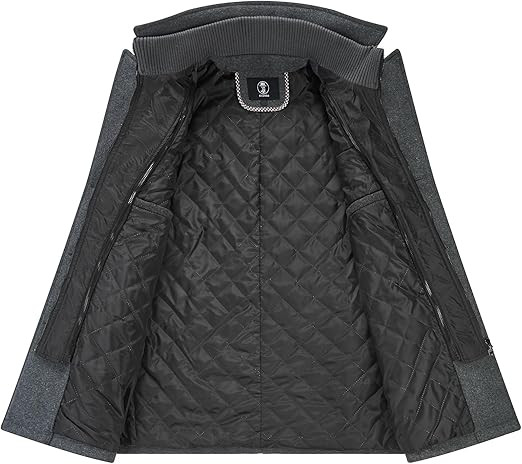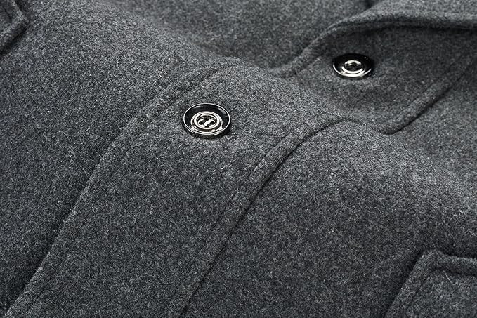 • Detachable Stand Collar: The wool blend coat features a button-down closure and a detachable full-zip stand collar design. This allows you to easily switch between formal and casual styles. Additionally, the detachable collar effectively blocks the wind, helping to keep you warm during the cold winter months.