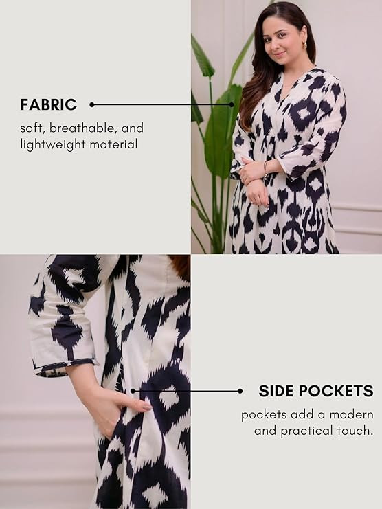 • Perfect for Every Occasion: Designed with a relaxed silhouette, this kurta set for women provides a comfortable yet stylish fit that suits all body types. Ideal for festive gatherings, workwear, and summer wear.