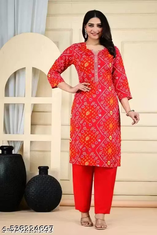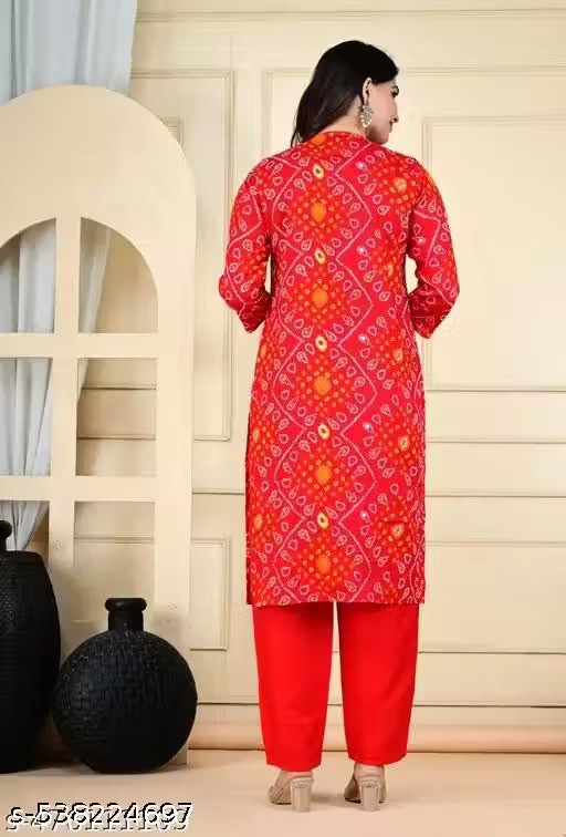 Enhance your ethnic style with this latest and stylish kurta pant set for women. Made from soft and comfortable viscose rayon fabric, this red kurta features a beautiful floral print with a trendy notch neckline, giving it a modern yet traditional look. Paired with matching palazzo pants and finished with elegant lace border detailing, this outfit offers both grace and comfort. Perfect for daily wear, casual outings, or small gatherings, this kurta set ensures a stunning and effortless look all day long.