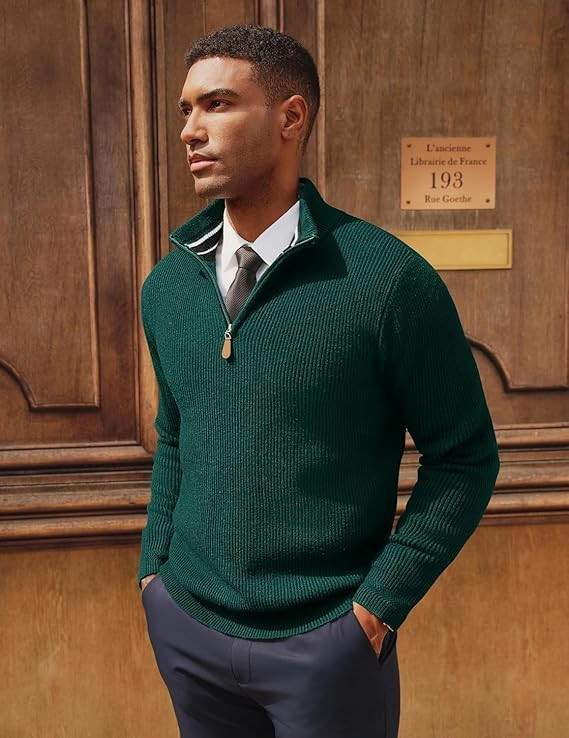 • FEATURES : This Quarter zip sweater for men is designed with ribbed cuffs and hem, quarter zip sweaters design, High neck polo collar sweater is stylish and casual. Suitable for autumn and winter.