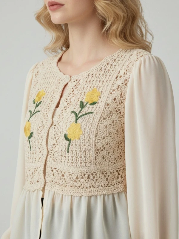 • Delicate crochet-style detailing on the front panel