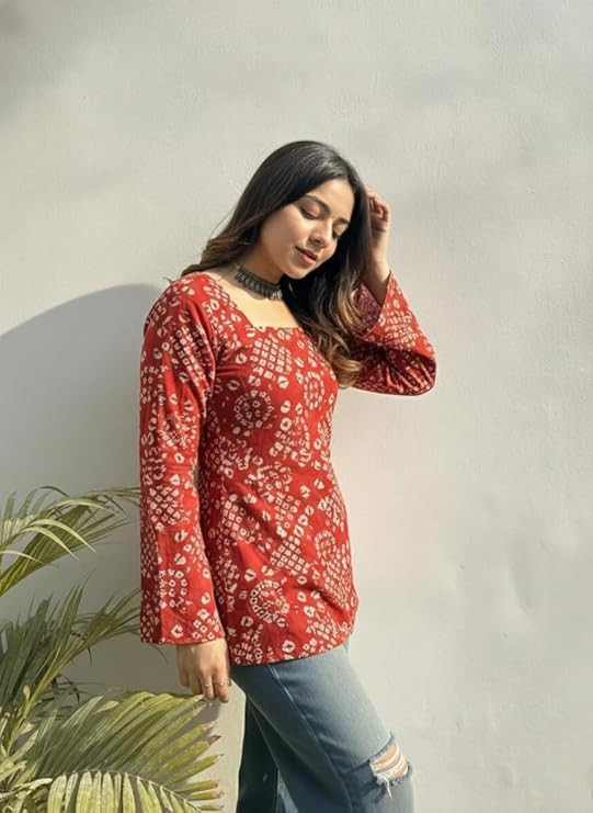 • Fit & Length: Straight fit short kurti with side slits supports ease of movement and pairs well with pants, palazzos, leggings, or jeans.