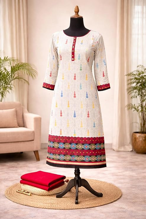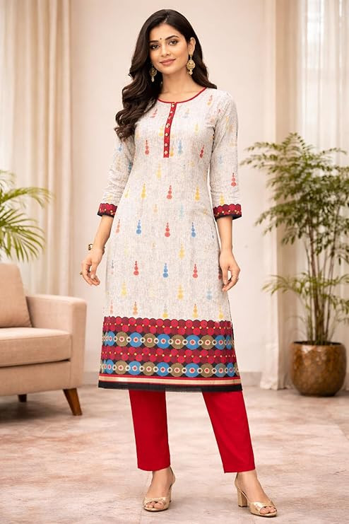 Women’s Cotton Blend Unstitched Kurti Set for Women | A-Line Style Dress Material | 2-Piece Traditional Ethnic Wear Suit Fabric