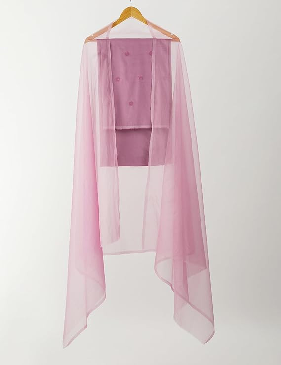Women's Unstitched Embroidered Cotton Kurta Pant Set with Organza Dupatta