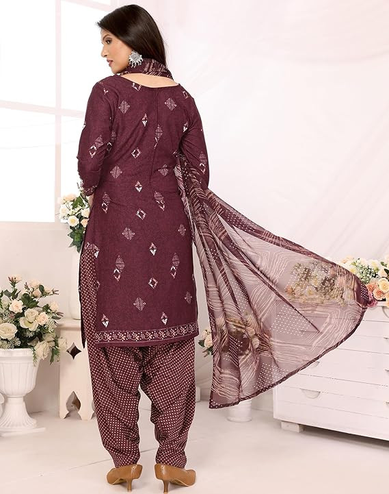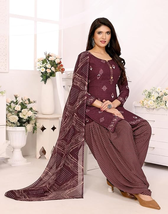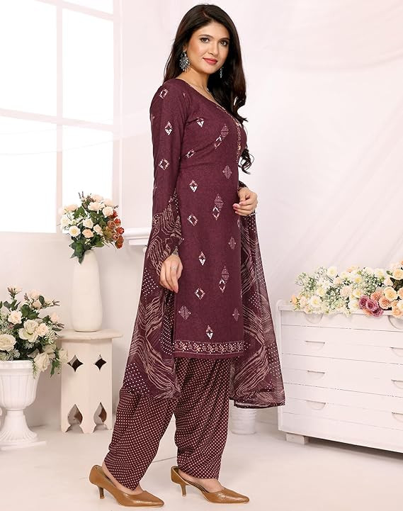 Yashika Women's Crepe Printed Unstitched Dress Material & Unstitched Salwar Suit Material With Dupatta_AZ-YS-P4-KUNDAN PURPLE