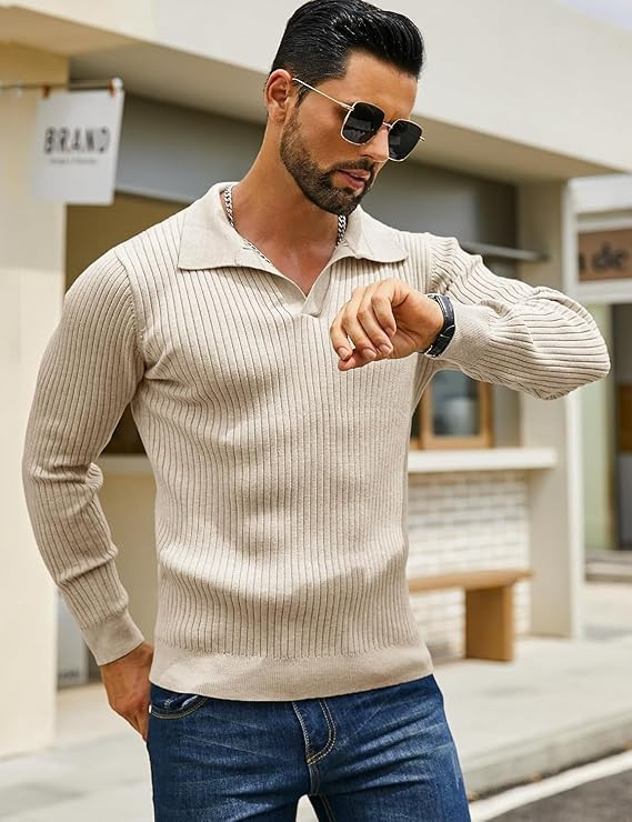 • Features a classic polo design sweater for man making it an ideal collar sweater for a refined, stylish look.