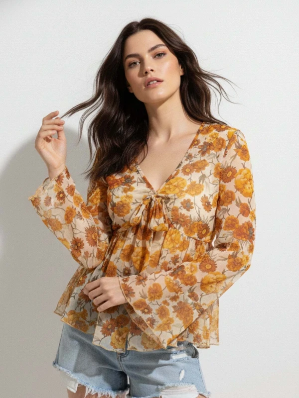 Bring effortless style to your everyday wardrobe with this trendy floral top that perfectly blends elegance with a modern vibe.