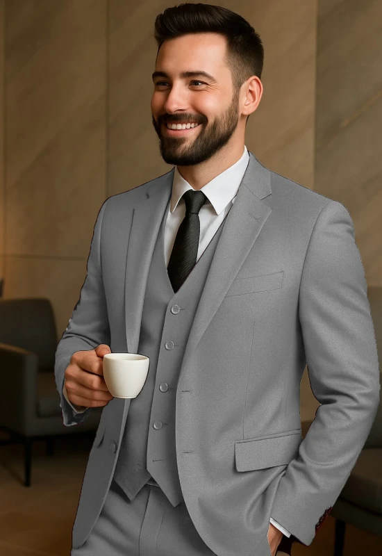 Sophisticated Grey 3-Piece Suit Look