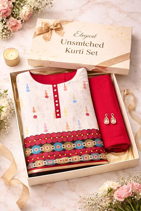 Women’s Cotton Blend Unstitched Kurti Set for Women | A-Line Style Dress Material | 2-Piece Traditional Ethnic Wear Suit Fabric